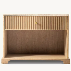 Mesita de noche de diseño de línea de lujo de gama alta de madera maciza de estilo americano RH, con diseño de encimera de mármol, mesita de noche lujosa