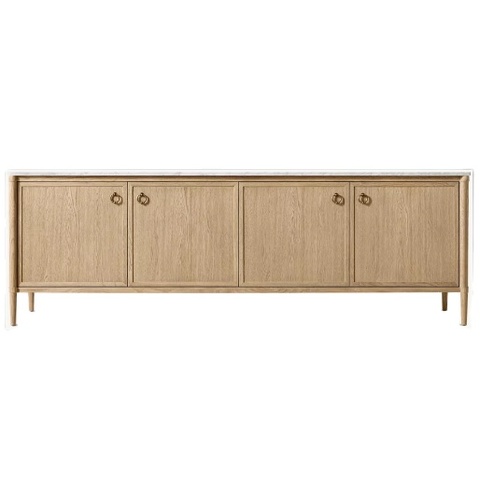 Consola de medios de madera maciza de estilo americano RH, gabinete de almacenamiento simple y de alta gama